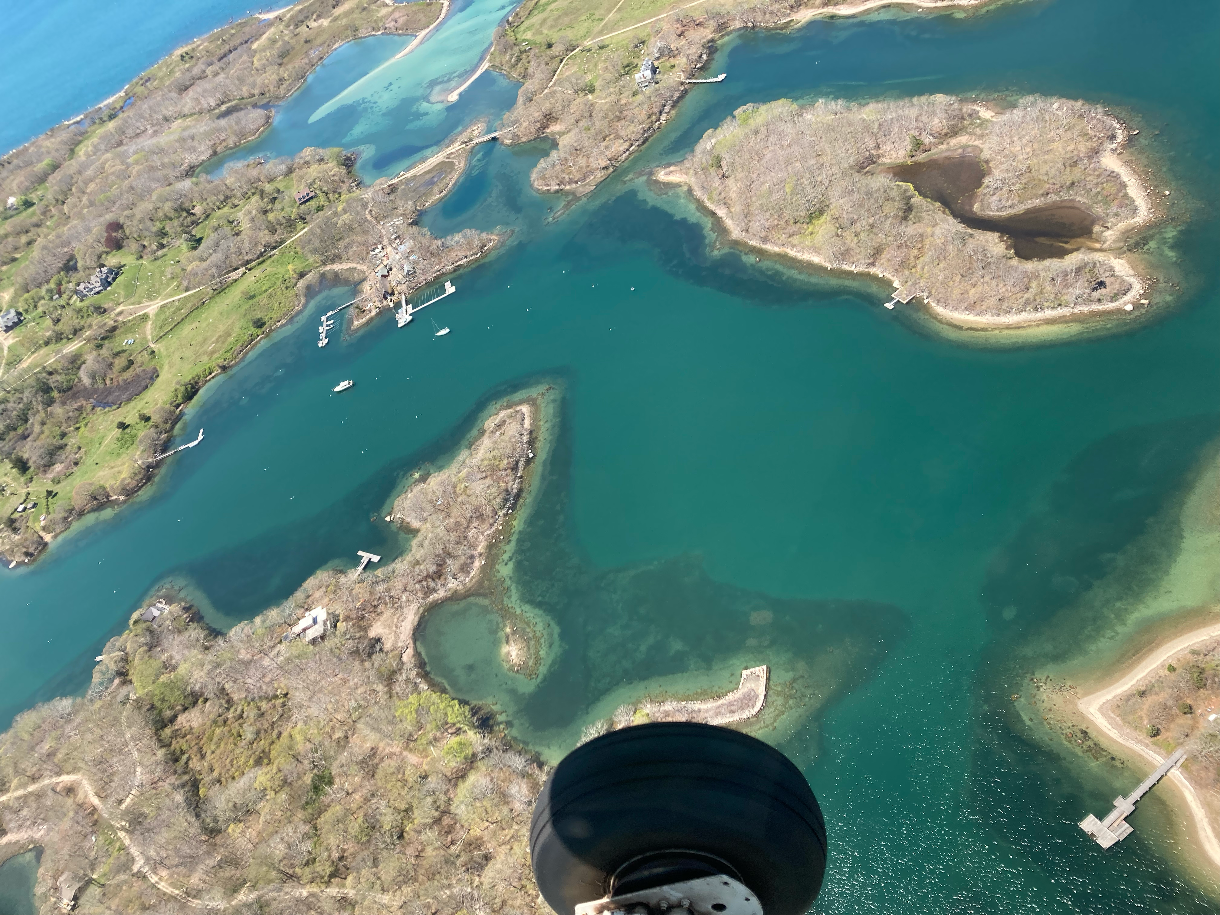 Flying over Naushon Island to survey the island’s forests to assess overall health. The forest is 90% beech trees and are at risk of developing beech leaf disease. Photo:Arlene Myers Alexander | Pilot: Arlene Myers Alexander