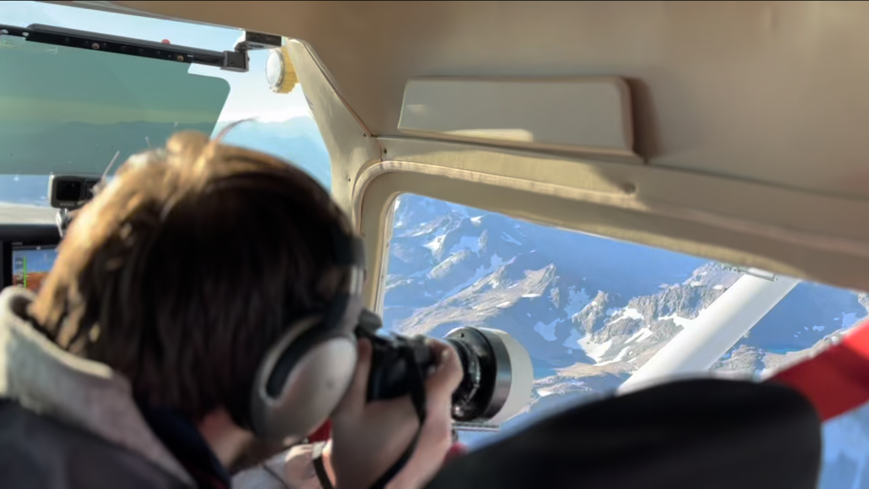 To bring attention to this crisis, artist Tristan Duke launched a unique project: harvesting glacier ice and molding it into a lens through which he photographs the very glaciers at risk. This year, LightHawk partnered with Duke to extend his project from the air, capturing rare aerial images “through the glacier, of the glacier.” The result is a striking body of work that blends art, science, and conservation, offering a powerful perspective on the urgency of protecting these glaciers.
