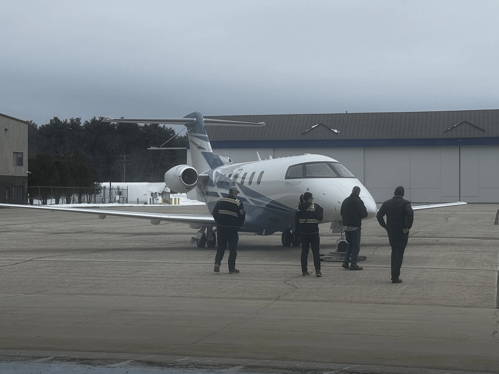 The morning began in the quiet stillness of a small airport in Portsmouth. Snow covered the ground, and for this Southerner, it was a chilly morning. My colleague Jonathan Milne and I met one of the pilots, who slid open the hangar doors to reveal the aircraft that would carry us—and our passenger—across the country: a Pilatus PC-24. It was an impressive sight. We were transporting an endangered Mexican wolf, and he would be making the journey in remarkable safety and speed.
