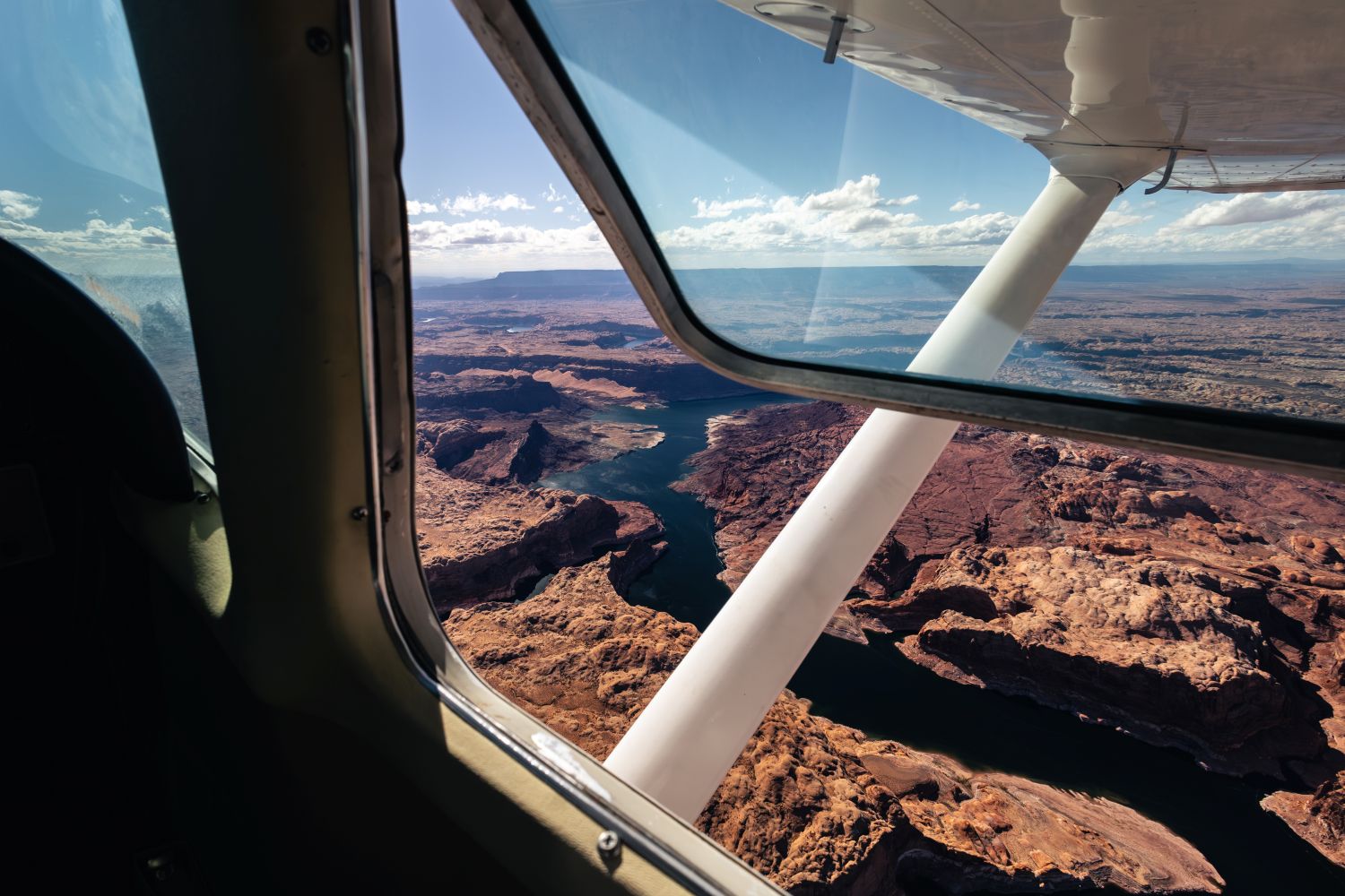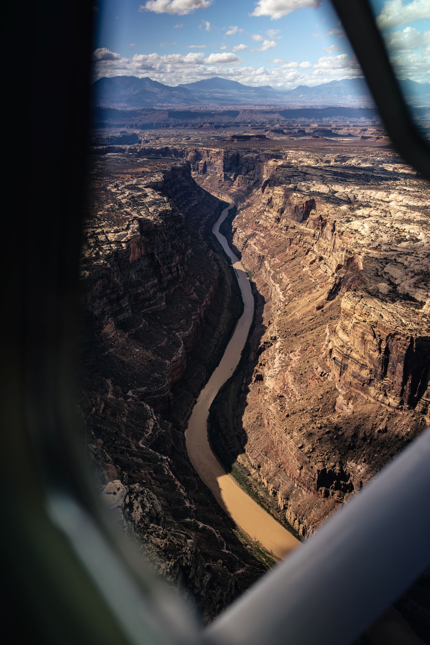 Looking out the plane window at the aerial perspective above the Colorado River. Photo: David Papineau | Pilot: Steve Meyer