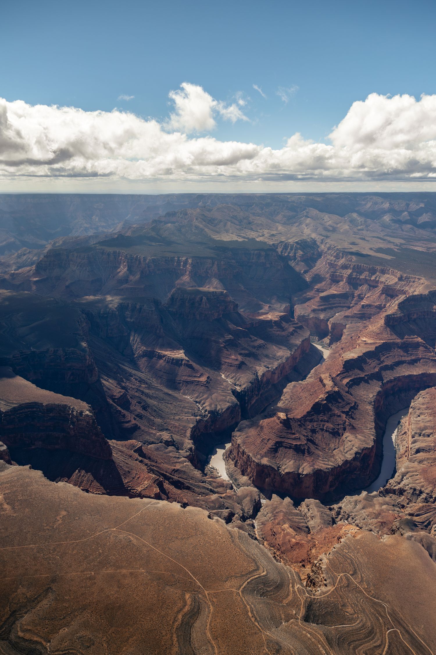 The clouds were just high enough for Meyer and Papineau to maintain their required altitude and remain under visual flight rules, allowing them to capture stunning imagery of the canyon. Photo by Steve Meyer.